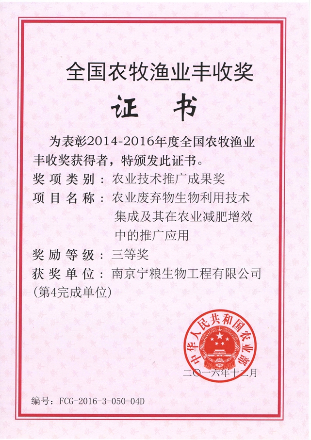 南京寧糧生物工程有限公司(以下簡稱“公司”)是專業(yè)從事農(nóng)用微生物菌劑、有機(類)肥料、復(fù)合微生物肥料、水溶肥料、土壤調(diào)理劑、重金屬葉面阻控劑等產(chǎn)品的研發(fā)、生產(chǎn)、銷售和服務(wù)的高新技術(shù)企業(yè)。公司占地200余畝。 公司擁有先進的生產(chǎn)、檢測設(shè)備與管理規(guī)范的生產(chǎn)基地。與南京農(nóng)業(yè)大學(xué)、江蘇省農(nóng)業(yè)科學(xué)院、中科院南京土壤研究所等科研院校建立了緊密的產(chǎn)學(xué)研合作關(guān)系,在南京農(nóng)業(yè)大學(xué)和江蘇省農(nóng)科院設(shè)有“寧糧”獎學(xué)金、獎教金和獎勵基金;擁有多個研發(fā)平臺并建有江蘇省研究生工作站;聘請了多位科研院校的教授專家為公司的技術(shù)顧問和技術(shù)指導(dǎo)。公司現(xiàn)已是中國有機(類)肥料生產(chǎn)技術(shù)創(chuàng)新戰(zhàn)略聯(lián)盟核心企業(yè)、江蘇高校協(xié)同創(chuàng)新中心有機固...
